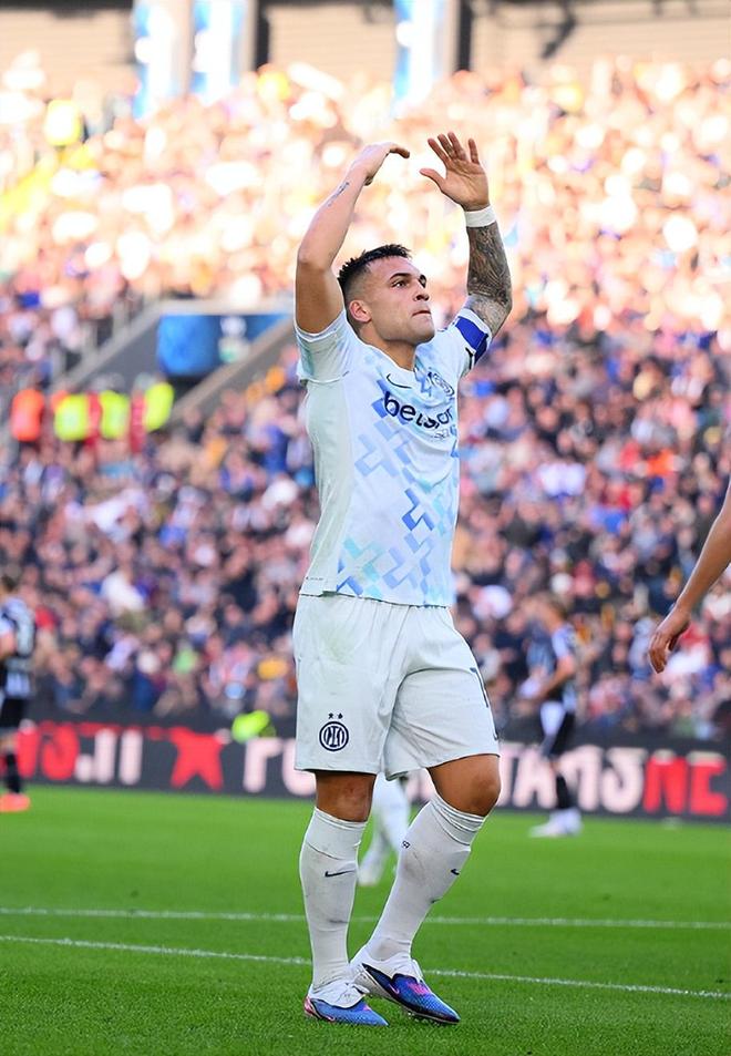 比赛开始后国米便立马进入进攻节奏,第5分钟,路易斯-恩里克右路传中,迪马尔科凌空抽射稍稍偏出;第15分钟,比塞克弧顶处横向带球射门,奥科耶将球化解;第20分钟,泽林斯基一脚直塞送到禁区,埃斯波西托精彩的脚后跟做球,劳塔罗扣过防守捅射破门,1:0!劳塔罗这赛季已经在意甲打进11球,在五大联赛过去的7个赛季中,仅有这4位球员的进球数全部上双;除了哈兰德,姆巴佩和凯恩,第4位恰恰就是劳塔罗。