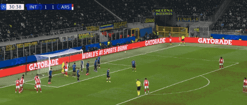 第18分钟,劳塔罗策动反击,小图拉姆的射门被莫斯克拉倒地封堵,巴雷拉的补射被萨利巴挡出,苏西奇一脚怒射,皮球直挂死角。