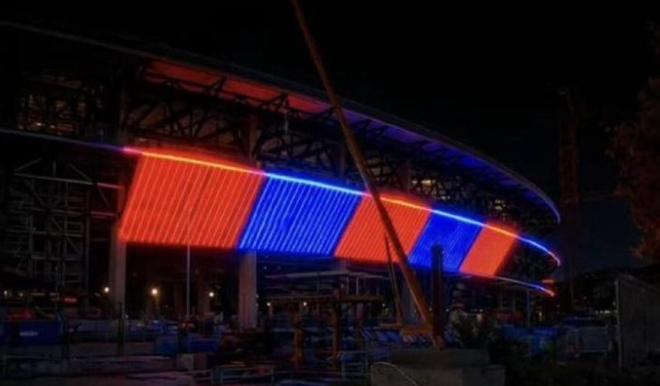 近日,社交媒体上流传出Spotify诺坎普球场外墙装饰面板点亮后的效果图。这些面板将在未来为球场外部增添红蓝色灯光,营造更加壮观的视觉效果。