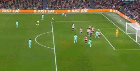 第3分钟,桑切特突入禁区低射破门,毕尔巴鄂竞技1-0