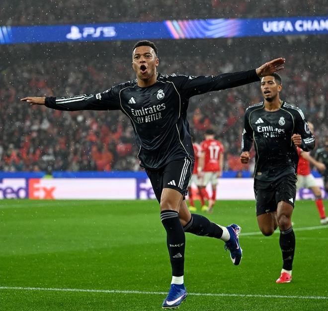 第25分钟,姆巴佩左路突破分球,贝林厄姆接球被奥塔门迪放倒,居莱尔二点远射擦着门柱稍稍偏出;第30分钟,阿森西奥右路一脚精准的斜45度传中,埋伏在后点的姆巴佩反越位启动抢点头槌顶入近角,1:0!姆巴佩本赛季俱乐部+国家队已打入40球,成为首位连续6个赛季进球40+的法国球员。