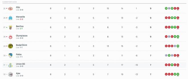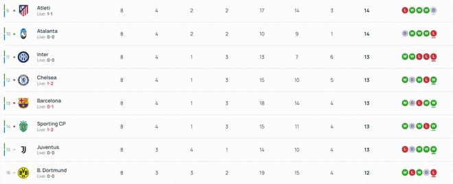 北京时间1月29日,欧冠联赛阶段最后一轮18场比赛全部结束了上半场的争夺。上半场结束后,曼城进入前八名,切尔西掉出前八名。西甲双雄皇马、巴萨目前都暂时落后,分别掉至第5和第13。