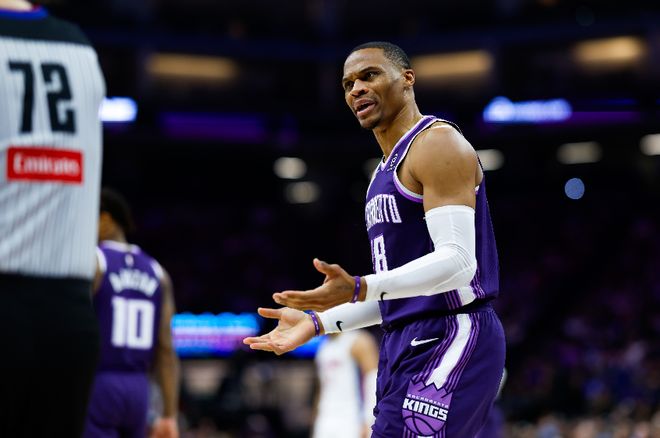 国王队这边,威少效率不高,投篮8中3,三分3中1,得到7分2篮板2助攻。