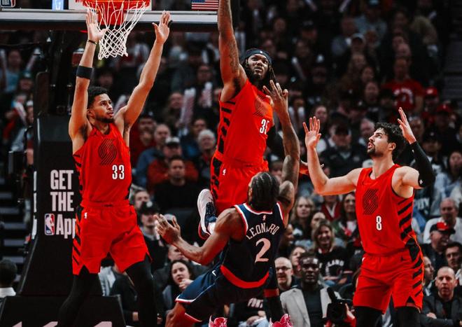 大洛的外线能力让对手投鼠忌器,如果你大胆夹击哈登,大洛就能用精准三分惩罚你;如果中锋上前协防,哈登则能轻松内切或单打终结。本场比赛中,开拓者中锋多次扑出补防,结果哈登多次持球突破篮下得手。哈登与大洛的挡拆配合,成为快船最致命的“三杯毒药”。当对手试图联防这对组合时,快船其他射手如伦纳德等人也能获得空位机会。所以大洛佩兹在场时,快船阵容相当于“死亡五射”。快船场上五人皆有三分能力,这极大拉开了空间,让哈登和伦纳德的突破通道如大海般宽阔。
