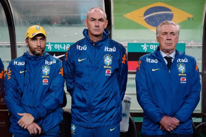 五次带队夺得欧冠,拿遍欧洲五大联赛冠军,或许对于卡尔洛·安切洛蒂来说,继续再执教欧洲俱乐部似乎缺少了挑战。不过,第一次成为国家队主帅就是执教巴西队,外界还是认为来自欧洲的安切洛蒂有些“艺高人胆大”。当然,意大利教头此前与巴西队的传闻可谓是由来已久,2022卡塔尔世界杯之后巴西足协就倾心于安切洛蒂,但此后皇马、巴西足协和安切洛蒂三方之间始终处于反复拉扯当中。在这段时间里,桑巴军团曾由U20主帅梅内塞斯和弗卢米嫩塞主帅迪尼斯临时带队,但后者在世预赛三连败令巴西足协只得启用B计划聘任多里瓦尔。然而这位接班人也并未给巴西队带来什么正向改变,最终在世预赛1比4惨败阿根廷后被炒了鱿鱼。