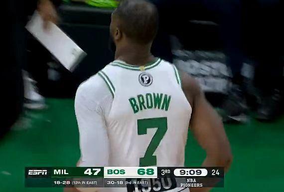 中场休息回来,双方进攻火力均是下滑,凯尔特人首次单节不足25分,更是限制雄鹿连续两节单节不足20分。布朗一上来就里突外投连得10分,率领凯尔特人扩大68-47领先21分优势,雄鹿有所反扑追分,但凯尔特人单节22-19净胜3分,前三节比赛结束凯尔特人扩大78-61领先雄鹿17分优势。