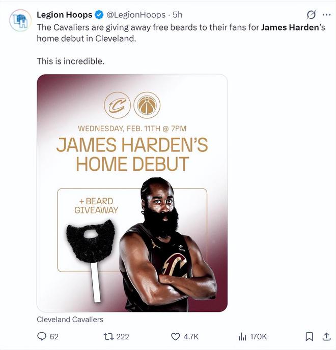 骑士球迷对哈登的喜爱溢于言表,为了欢迎哈登骑士主场的首秀,主场为每一个球迷都准备了大胡子道具。为何萧华这么不喜欢哈登?