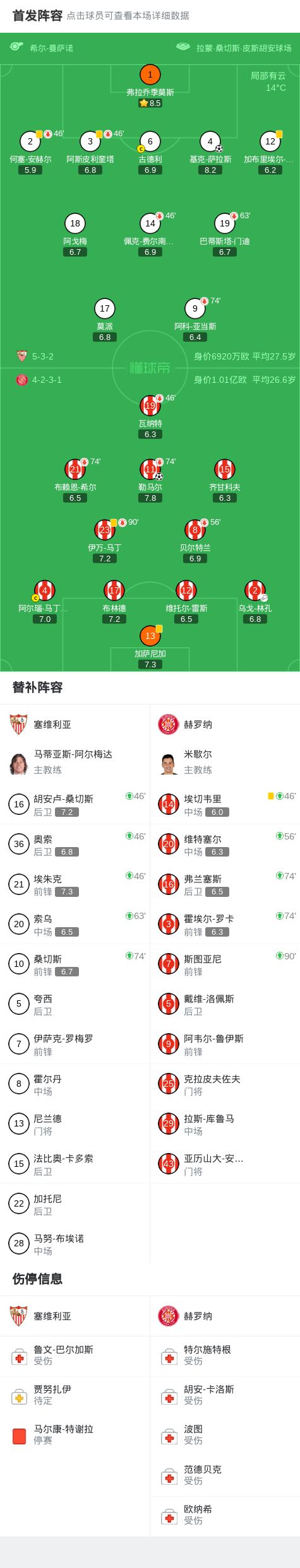 塞维利亚1-1赫罗纳,勒马尔先拔头筹,基克-萨拉斯扳平