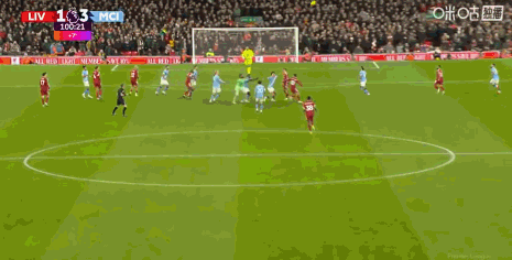 比赛最后时刻,由于利物浦1-2落后,阿利松上前参与进攻,最后谢尔基在半场附近接球后起脚推射,但是力量不大,于是哈兰德和索博斯洛伊开始追球。