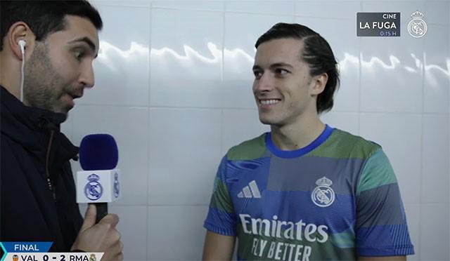 联赛客战瓦伦西亚,卡雷拉斯在边路一条龙突破为皇马打破僵局,最终帮助球队以2-0击败对手。赛后,他接受了皇马官网的采访。