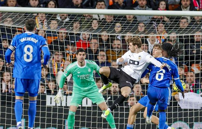整个上半场,主场作战的瓦伦西亚,针对皇马的进攻阵型,做出了针对性的部署,而且效果也比较理想。针对姆巴佩的前场拿球,瓦伦西亚的几名中后卫轮番上前干扰,迫使他将关键的一传或者射门交给其他的队友。而在进攻端,里奥哈、丹朱马和杜罗的配合,也给皇马的防线带来不小的麻烦。