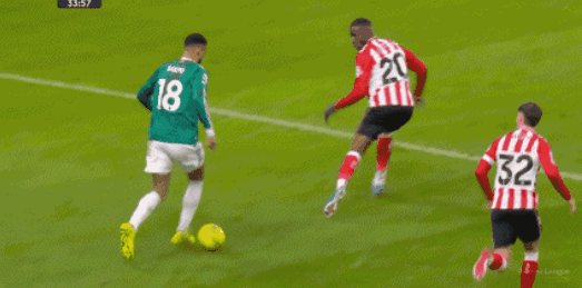 比赛开打第9分钟,杀到前场的科纳特,就完成了一脚势大力沉的远射,但没有压住皮球直接飞出了底线,第19分钟回到本方禁区的科纳特,又贡献了一记关键防守,抢在桑德兰门前包抄球员前,将穆杰莱的下底传中挡出。